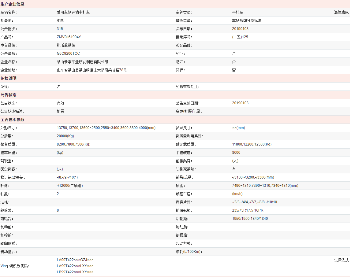 乘用车辆运输半挂车